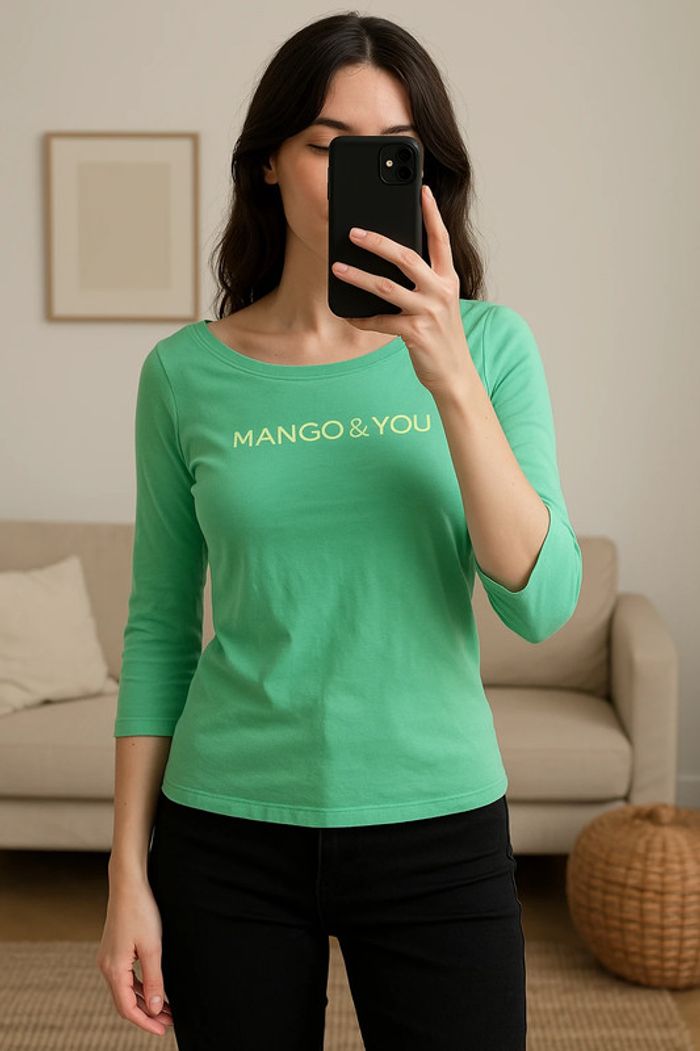 🌿 Haut en coton couleur vert menthe légèrement pastel, avec une écriture "Mango" en vert pomme lumineux. 🧵 Coupe droite, manches 3/4, encolure ronde. 💚 Vintage des années 2000 : Style rétro Y2K, parfait pour un look old school ou un layering estival. 🌟 100% coton – agréable à porter, matière douce et légère. Taille : S / 36 / 8 État : Très bon état Couleur : Vert "magic mint" avec écriture vert pomme Matière : 100% coton 💡 Idéal avec un jean taille basse, un short en denim ou une jupe plissée pour un look 2000s assuré ! 👖✨ #MangoWoman #MangoVintage #VintageStyle #VintageLook #Y2K #Y2Kstyle #Oldschool #hautmanches¾ #mangotop