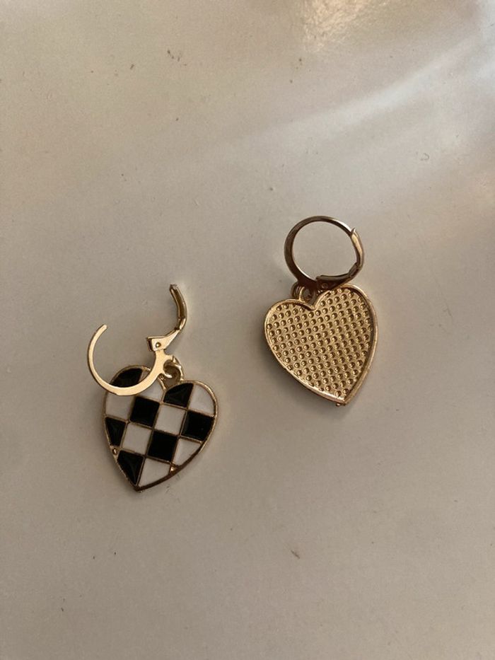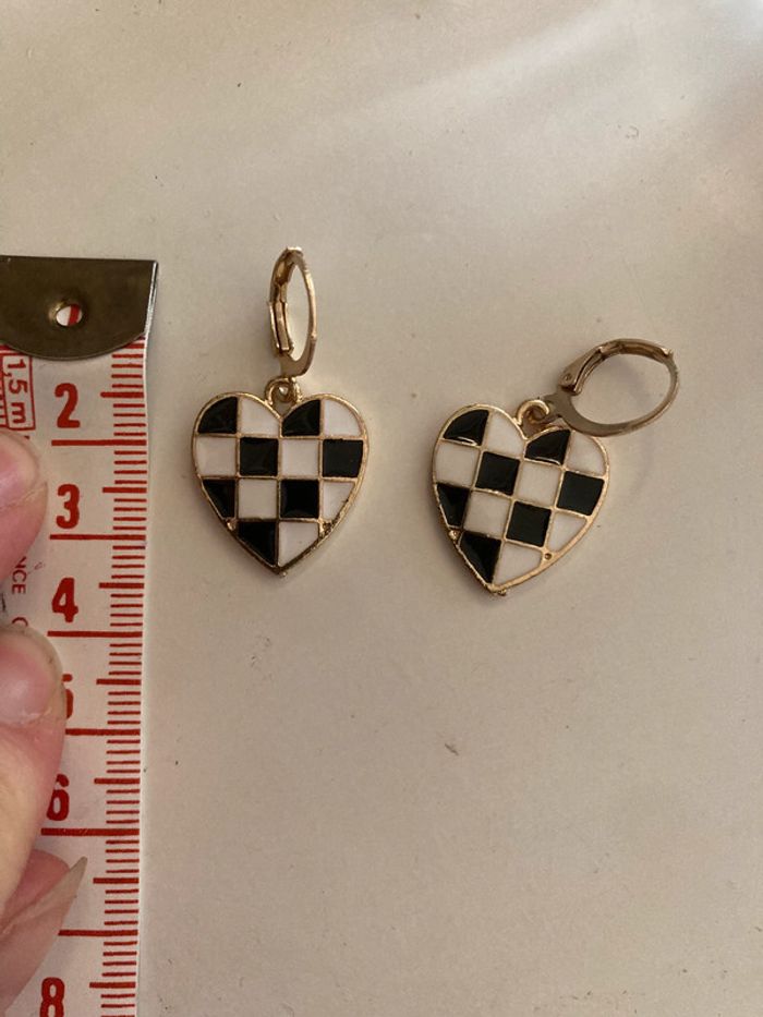 Boucles d’oreilles pendantes cœurs noir et blanc - photo numéro 4