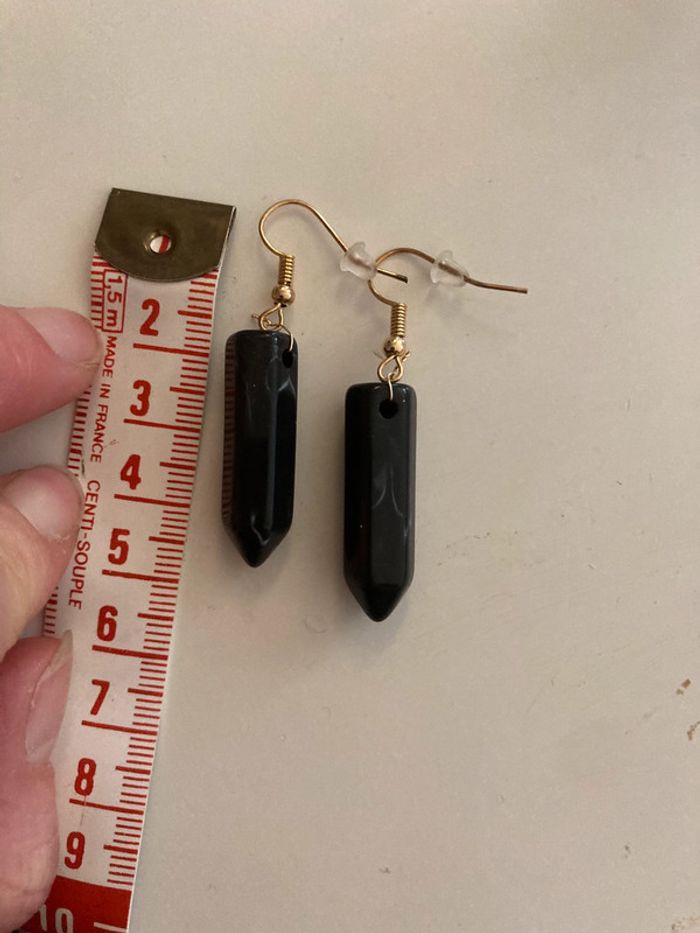 Boucles d’oreilles pendantes pierres noires – Neuf - photo numéro 2