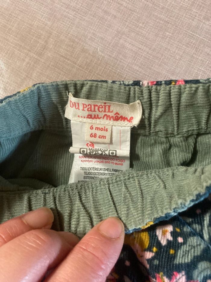Trop mignon ce petit pantalon réversible en velours côtelé ! Un côté uni vert sauge, un côté à motifs floraux colorés avec de jolis petits animaux. Taille élastiquée, coupe ample, parfait pour laisser bébé libre de ses mouvements. • Taille : 6 mois / 68 cm • Marque : Du Pareil au Même • État : Très bon état • Matière : velours 100% coton (extérieur) #pantalonbebe #dpam #dupareilaumeme #velours #motiffloral #reversible #6mois #vintedkids