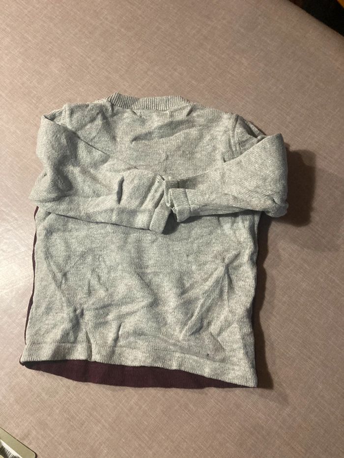 Pull bébé Vertbaudet Taille 1 ans/12 mois Gris et bordeaux Boutons à l’encolure #pullvertbaudet #pull12mois #pullgarcon #pullgarcon12mois #pull1an #pullgarcon1an