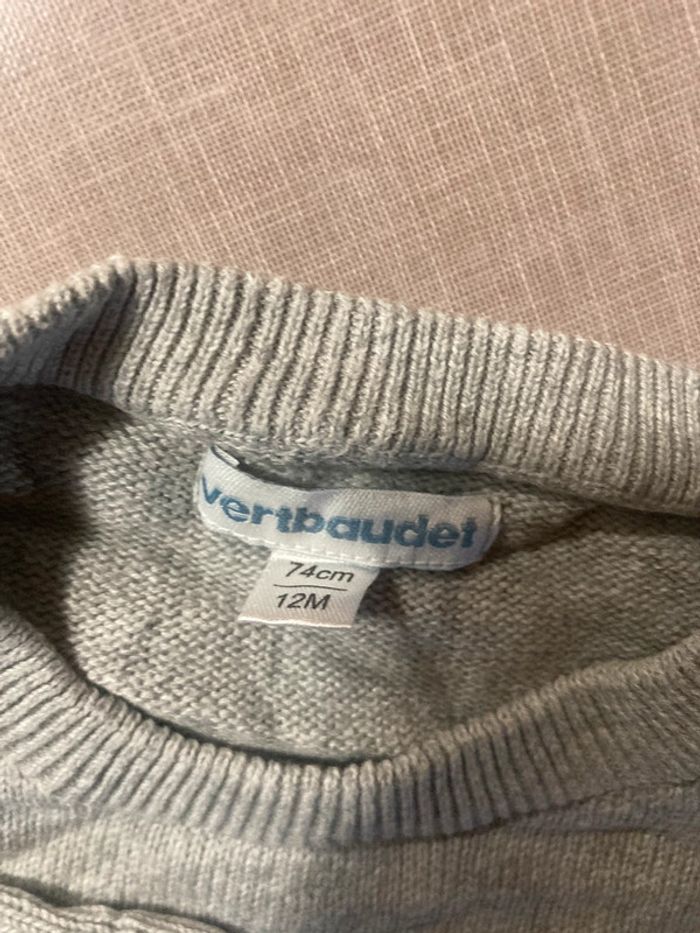 Pull vertbaudet 12 mois gris et bordeaux - photo numéro 1