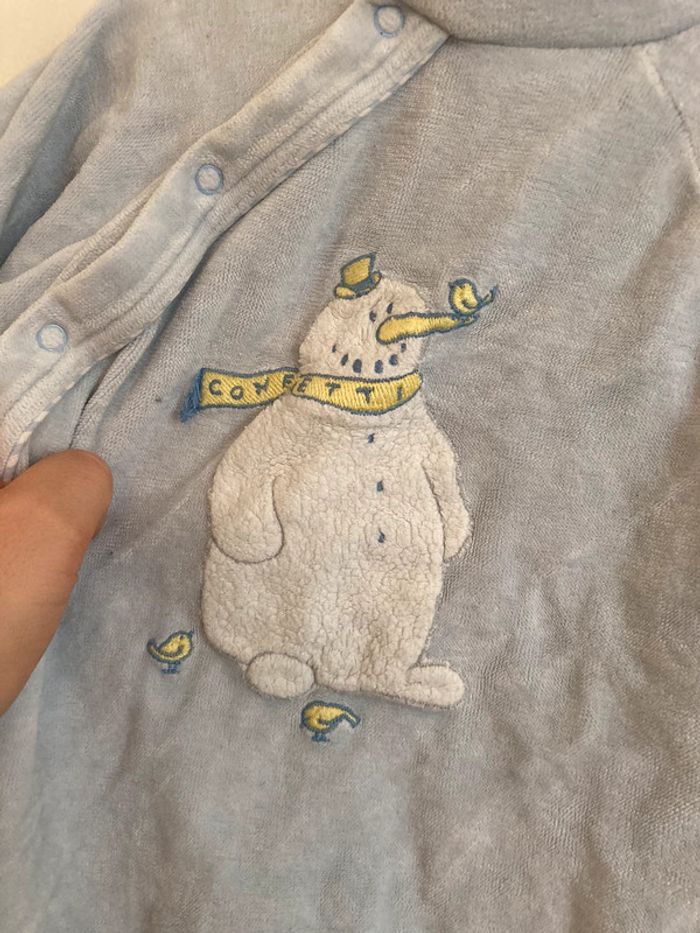Pyjama velours Dors bien Bleu Taille 3 mois Motif bonhomme de neige #pyjamavelours #dorsbien #grenouillère #pyjama3mois #bonhommedeneige