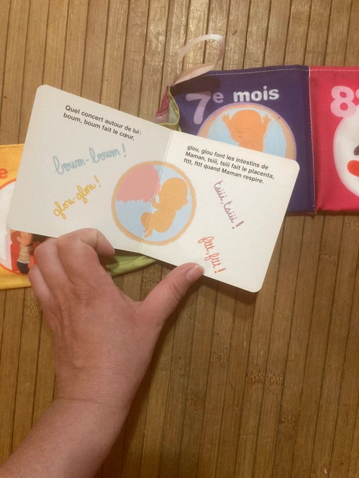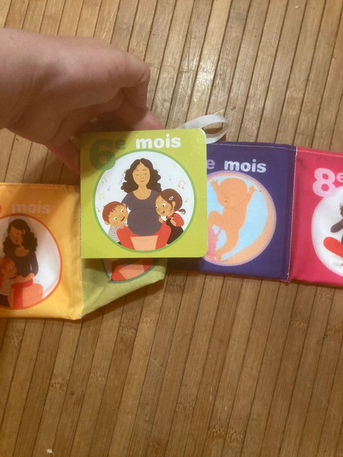 9 petits livres cartonnés Pour apprendre à attendre bébé Les petits livres se range dans l’étui en tissu et se referme par des liens Collection de mini albums à découvrir au fil des mois pour suivre la grossesse et préparer le futur grand frère ou grande sœur à l’arrivée de bébé. Catherine Dolto #catherinedolto #9mois #livregrandfrere #livregrandesoeur #attendrebebe