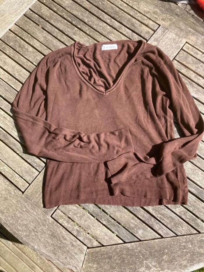 Pull Fenix Marron Viscose et laine Col en V Effet un peu stretch #fenix #pullfenix #pullmarron