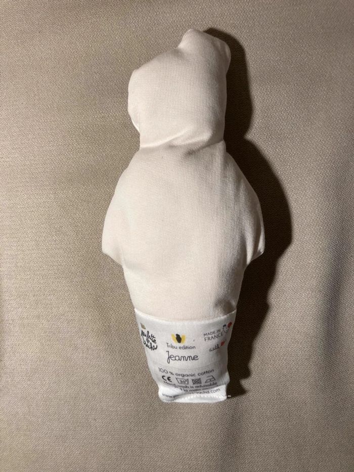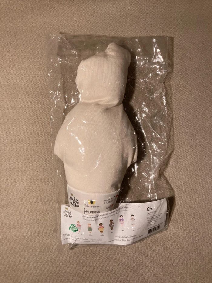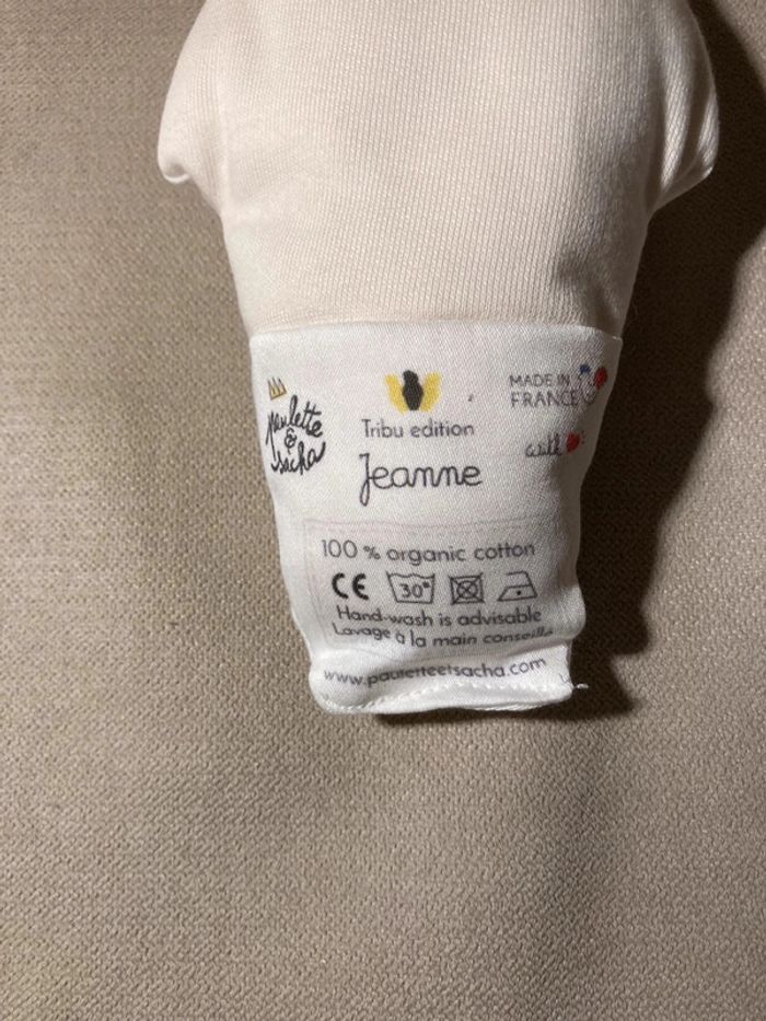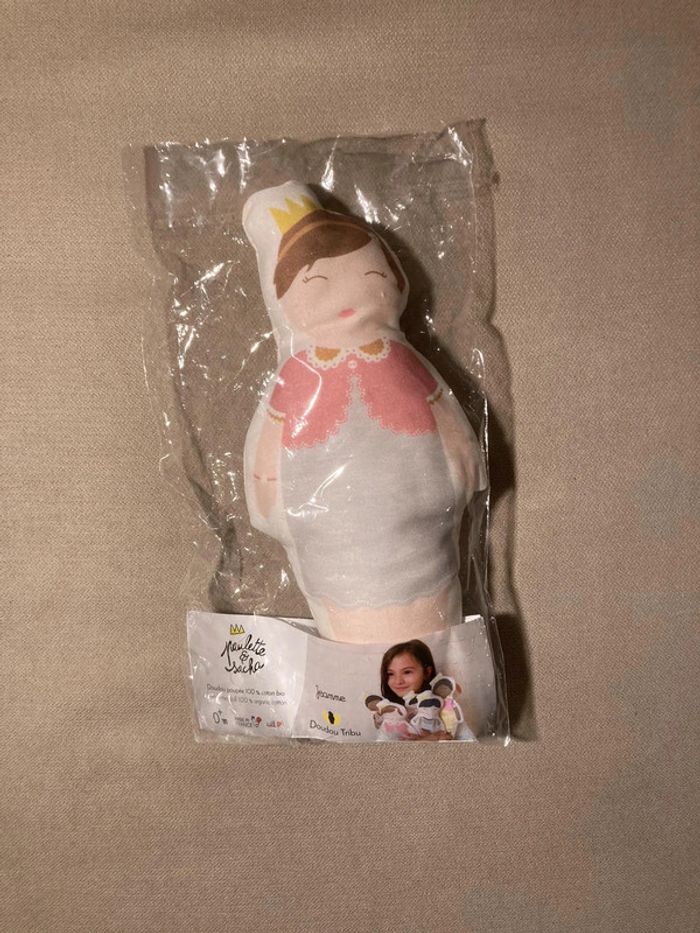 Neuf jamais utiliseDoudou poupée de la collection Tribu en coton 100% bio et 100% fabriqué en France. Le doudou mesure 25 cm. Sur la face avant un joli graphisme représentant une fillette sur un coton satin bio très doux. La face arrière est confectionnée avec un tissu sweat bio labellisé GOTS et qui offre une texture moelleuse pour encore plus de découverte en terme sensoriel pour bébé ou le jeune enfant. Lavable en machine à 30°C
