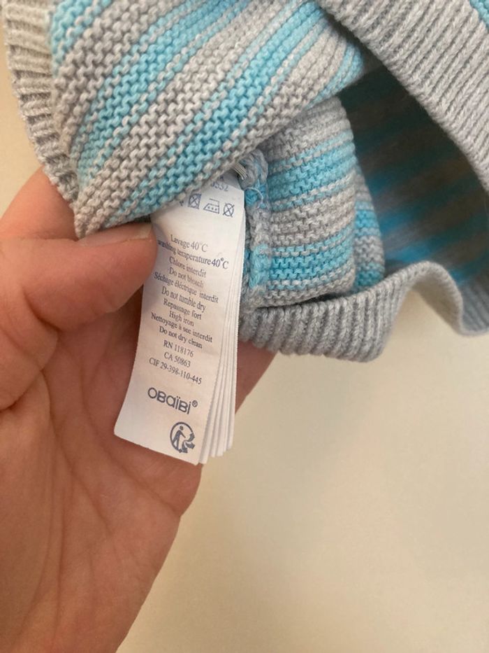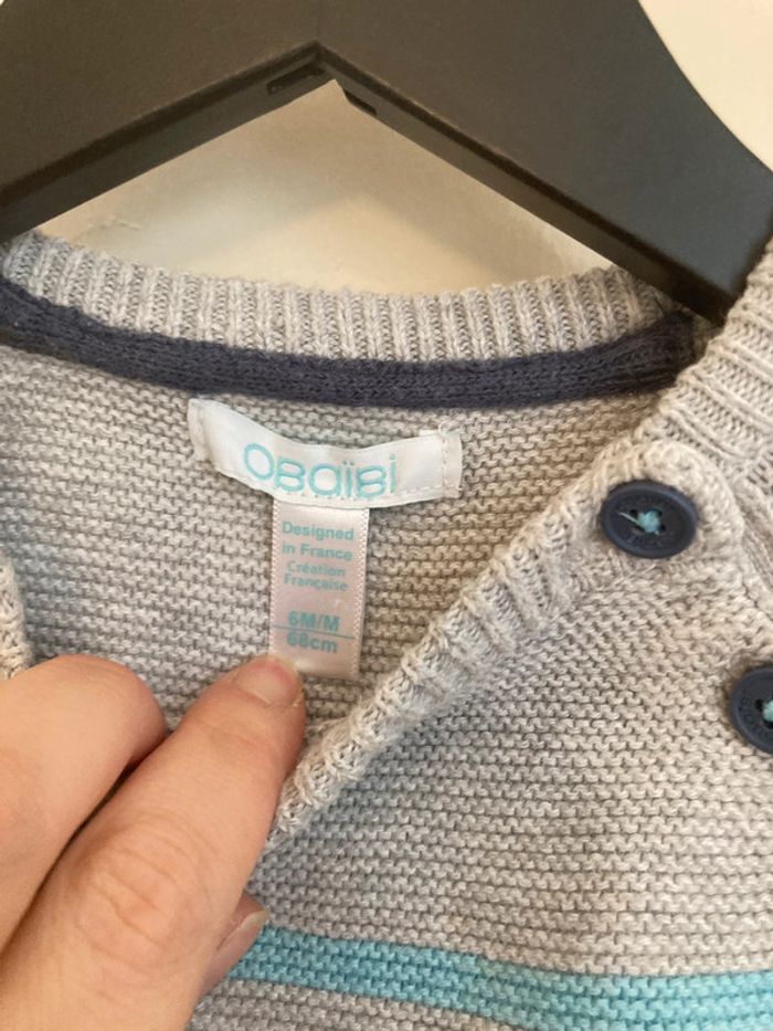 Pull bebe rayé Obaïbi Taille 6 mois Gris et bleu Bouton à l’encolure pour un enfilage facile #pullbébé #obaibi #obaibi6mois #pullrayébebe #pullbebegarçon #pullobaibigarcon