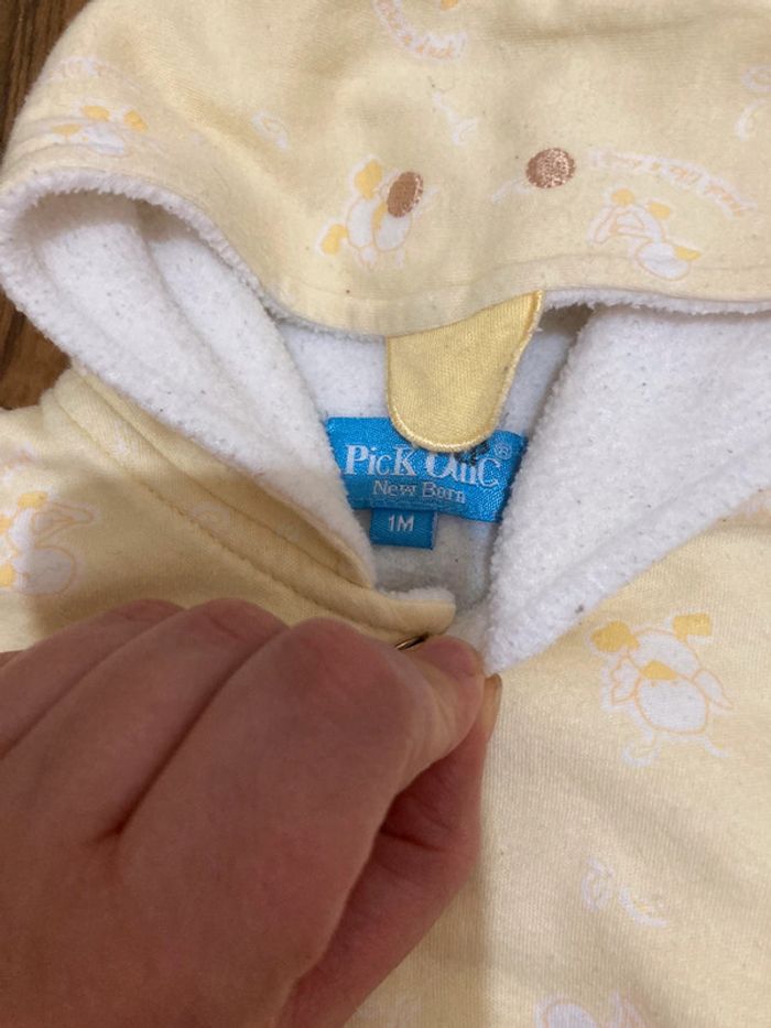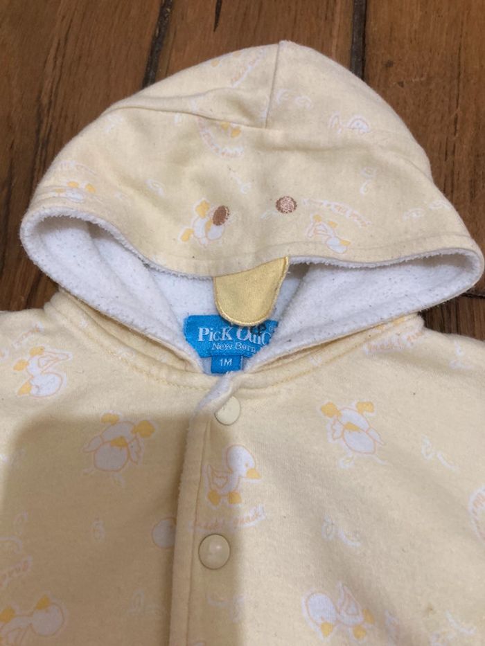 Manteau/veste bébé Pick Ouic Capuche en forme de canard Motif canard Polaire à l’intérieur Taille 1 mois Pantalon assorti vendu sur mon dressing #manteaucanard #vestebebe #manteau1mois #pickouic