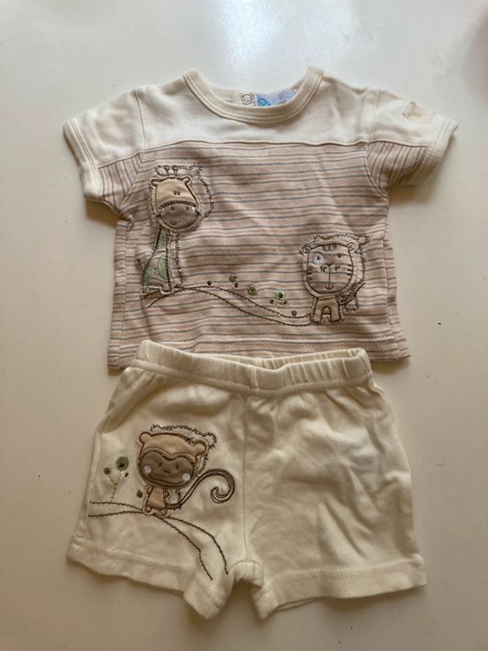 Ensemble t-shirt et short bébé Motif animaux singe girafe lion Prémaman Taille 1 mois Coton #tshirtbebe #shortbébé #premaman