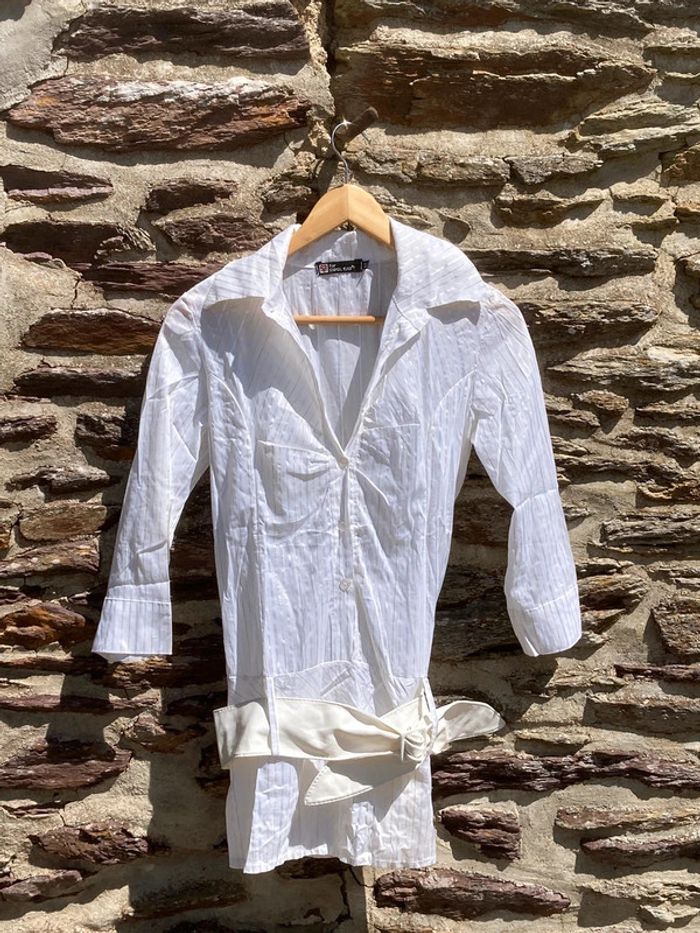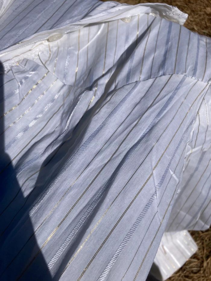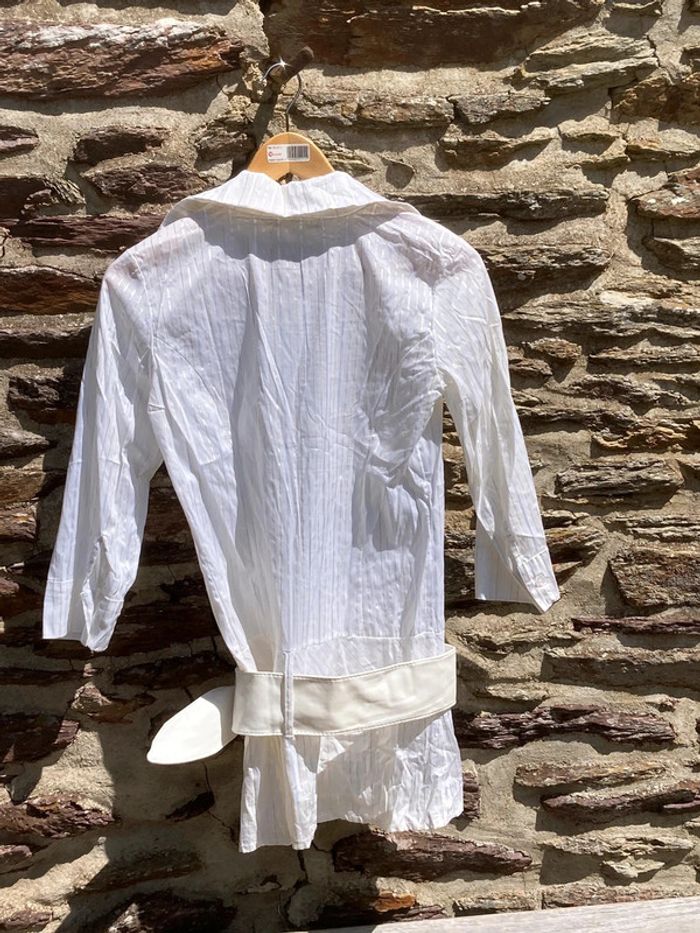 Chemise longue, manche trois quart Rayures dorées Ceinture blanche en simili cuir Taille M #chemisevintage #forcoolcat #chemisevintagefemme #chemisefemme38 #y2k #y2kstyle #y2kfashion #y2kvintage #oldschool