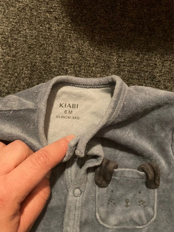Pyjama bébé velours bleu KIABI - Taille 6 mois - photo numéro 2