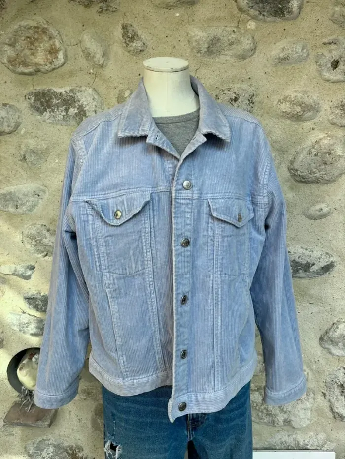 Monki - Veste velours côtelée bleu clair pastel ciel oversize - photo numéro 1