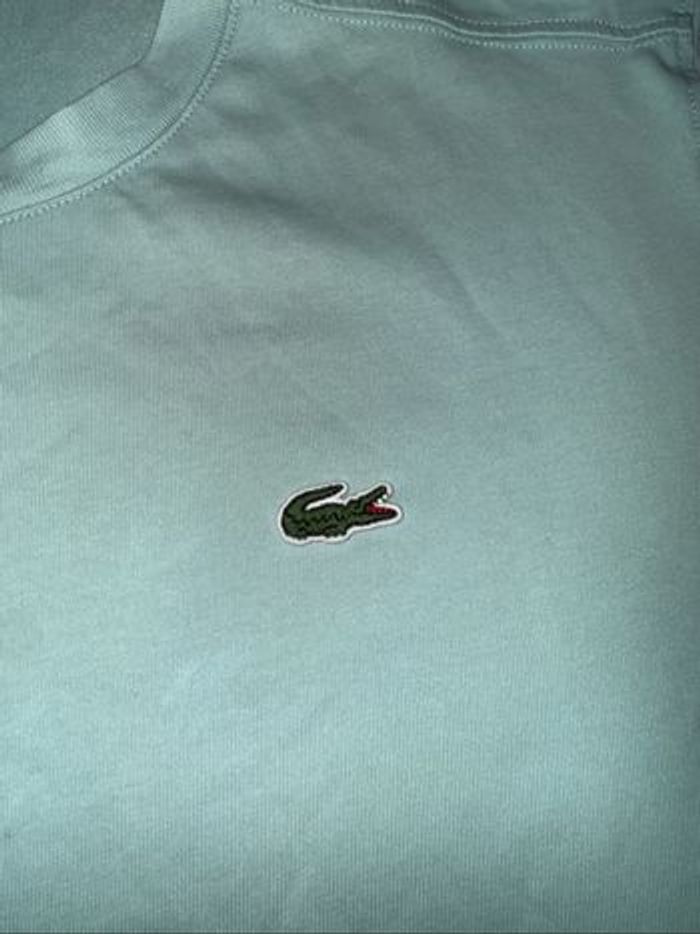 T-shirt Lacoste regular fit porté mais reste en très bon état général. minuscules défauts, voir photos. De couleur vert/bleu