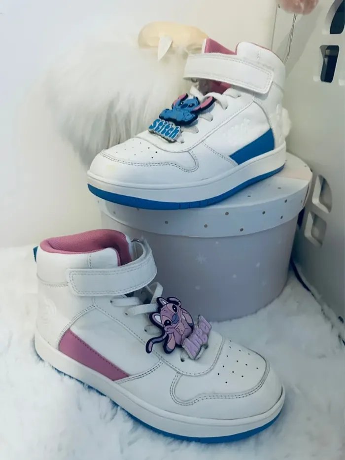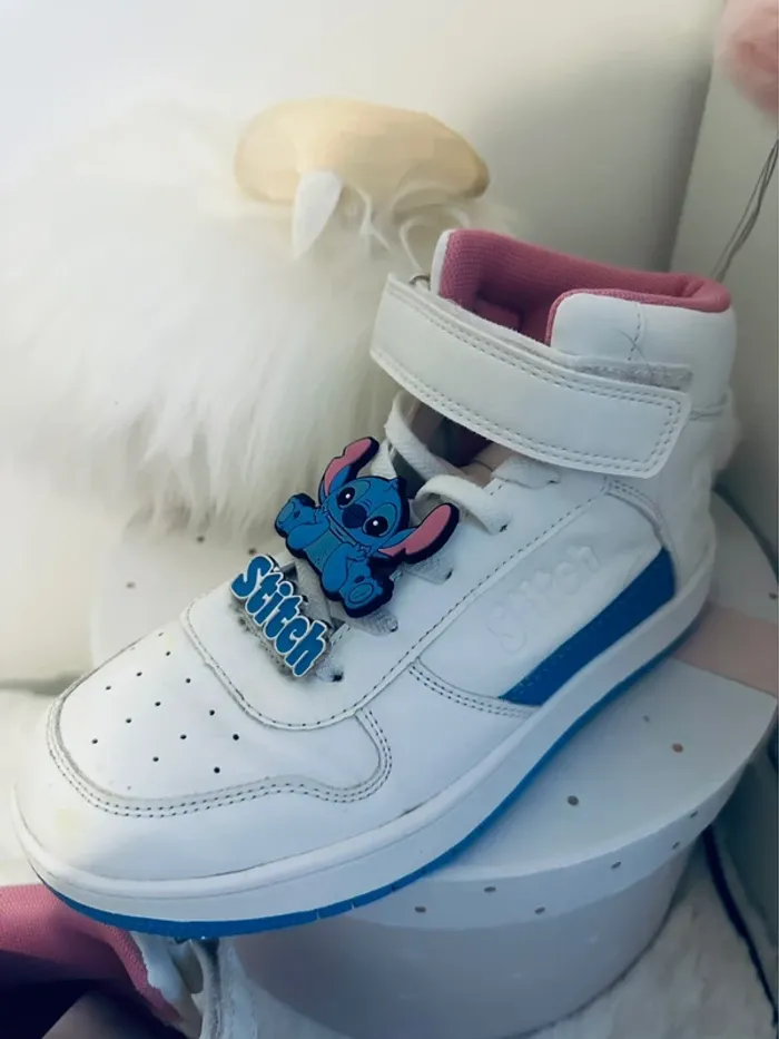 ⛔️ ENVOI UNIQUEMENT PAR MONDIAL RELAI . Baskets montantes Stitch , présence d’une micro tache jaune sur le devant d’une basket ( cf photo) . Taille 33/34 J’ai des articles enfants , livrés , jouets 🧸dans mon dressing . Remise sur les lots🌈🌈🌈🌈 #fille5ansisaange #fille6_7ansisaange