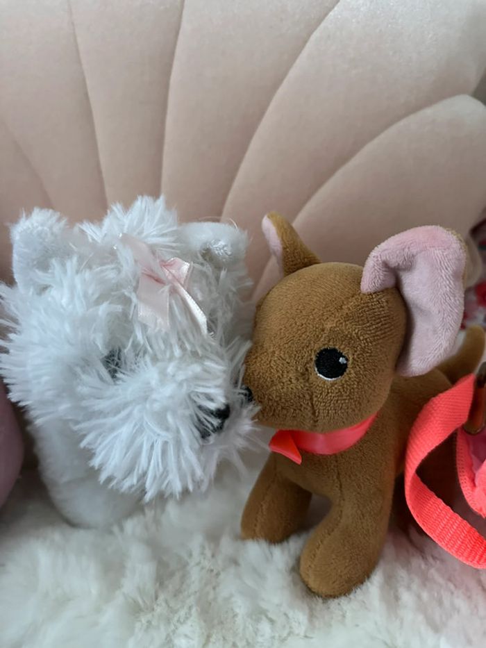 Lot de deux petits chiens 🐕 dans leur panier . Un petit chihuahua et un petit westie trop mimis ❤️. PAS D’ENVOI PAR VINTED GO. J’ai d’autres articles peluches chiens 🐶 🧸et jeux enfants , , jouets 🧸dans mon dressing . ... #jouetspeluchesdoudousisaange