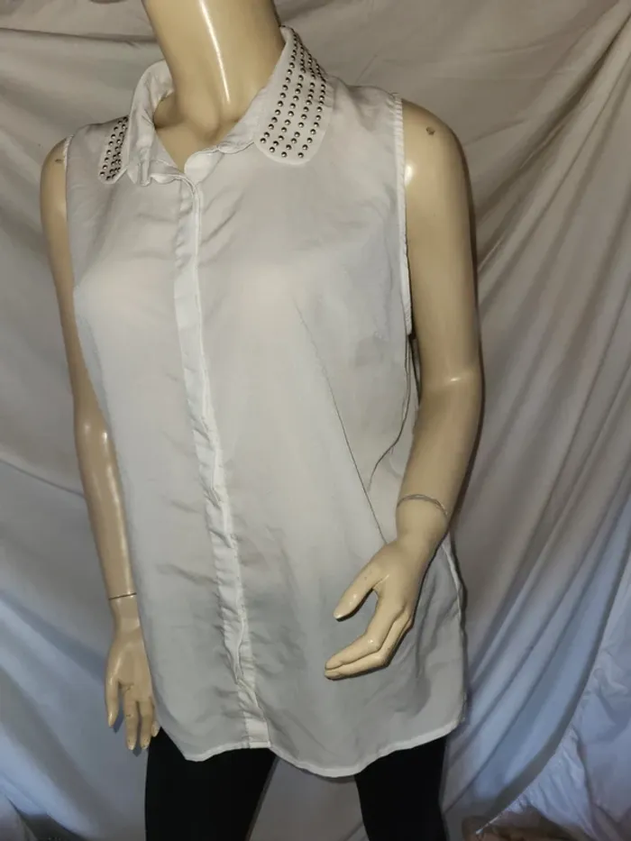 Blouse manches courtes femme, blanc taille 44, marque ici et maintenant Neuf, toujours le bout de l'astique de l'étiquette dessus ( voir photo) Plus de vêtements sur #44femmesolene29690 SE