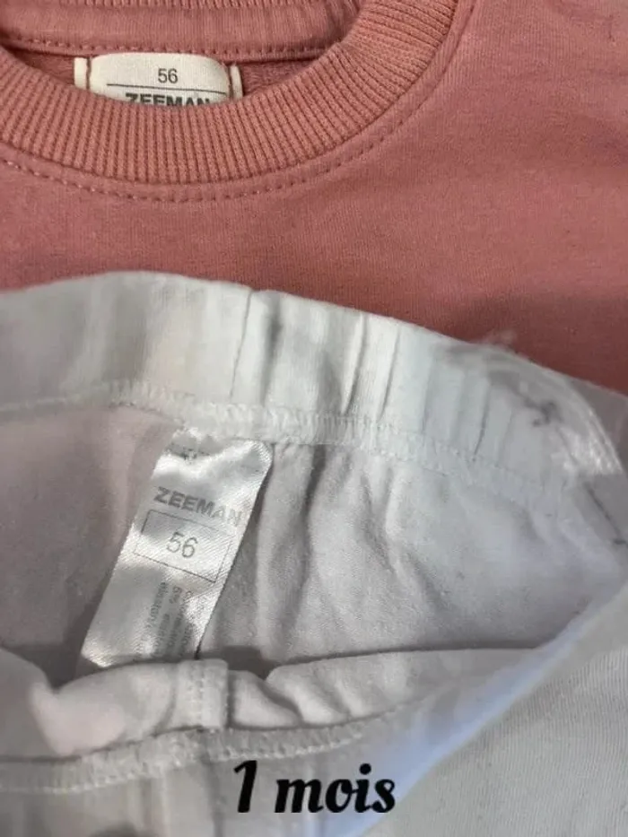 Lot 2 ensembles taille 1 mois Marque zeeman En très bon état aucun défaut Cliquer sur #tclamat1m pour l’ensemble des annonces de cette taille #jumelles