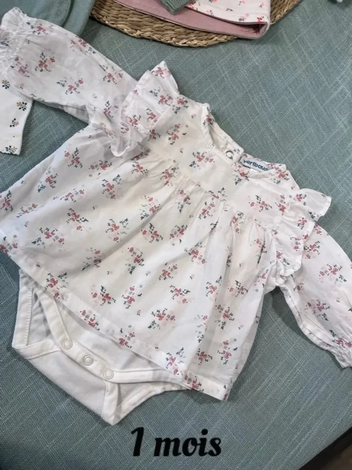 Lot tenues taille 1 mois Marque vertbaudet 1 veste réversible 1 brassière 2 leggings et 1 blouse avec Bodie intégré En très bon état peu porté aucun défaut Cliquer sur #tclamat1m pour l’ensemble des annonces de cette taille Et sur #tcvertbaudet pour l’ensemble des articles de cette marque #veste #blouse #leggings #brassière