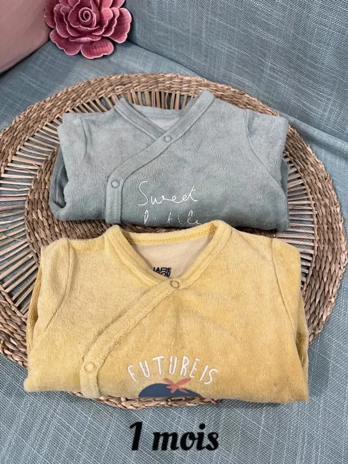 Lot 2 Pyjama svelours taille 1mois Marque la redoute #tcmixte En très bon état aucun défaut Cliquer sur #tclamat1m pour voir l’ensemble des annonces de cette taille #mixte #velours #ouverturedevant