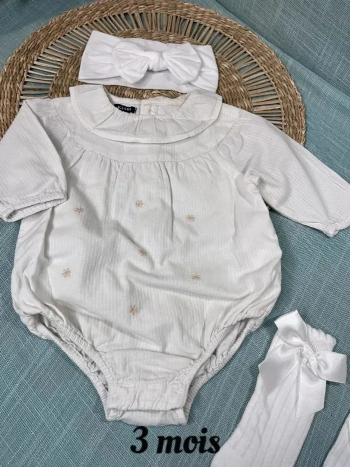 Barboteuse bandeau et chaussettes taille 3 mois - photo numéro 1