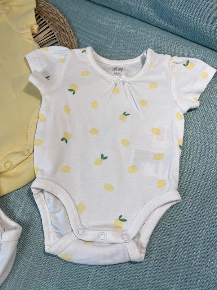 Lot 3 bodies taille 0-1 mois 50 cm Marque h&m En très bon état aucun défaut Cliquer sur #tclamat0m #tclamat1m pour l’ensemble des annonces de cette taille #manchecourte #lot #citron