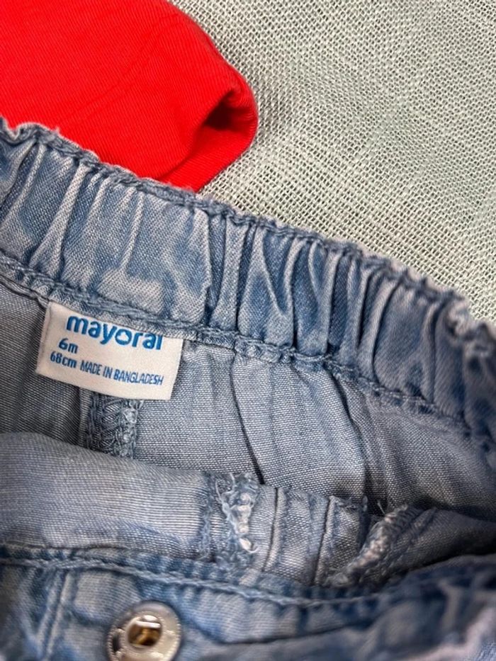 Ensemble taille 6 mois Marque mayoral Comprends teeshirt neuf jamais porté juste lavé et un short souple En très bon état aucun défaut Cliquer sur #tclamat6m pour l’ensemble des annonces de cette taille #mayoral