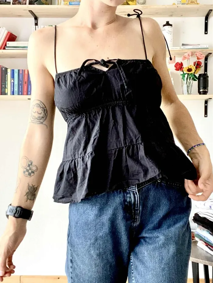 Blouse H&M en taille XXS - Très bon état ❤️ 🌟Caractéristiques : - Marque : H&M - Taille : XXS - Etat : Très bon état - Couleur : noir - Motif : bretelles réglables ainsi que noeud devant - effet bohème - Matières : coton 🌟Mesure à plat : - Aisselle : 34cm - Longueur : 32cm (sans bretelles) ------ 🐈 Poils de chat possible 💸 Remise sur les lots : 🌸 5% dès 2 articles 🌸 10% dès 3 articles 🌸 15% dès 5 articles 🚚 Envoi rapide et soigné (tout emballage est recyclé) 🚶🏻‍➡️ Remise en main propre possible dans les alentours d'Angers #Vinted #BonnesAffaires #VintedFrance #ModeFéminine #VêtementsDeMarque #LookChic #ModeTendance #RobeNoire #StyleÉlégant #ModePasChère #VintedStyle #RobeDeSoirée #VêtementsDeQualité #LookMinimaliste #FashionSale #VêtementsDoccasion