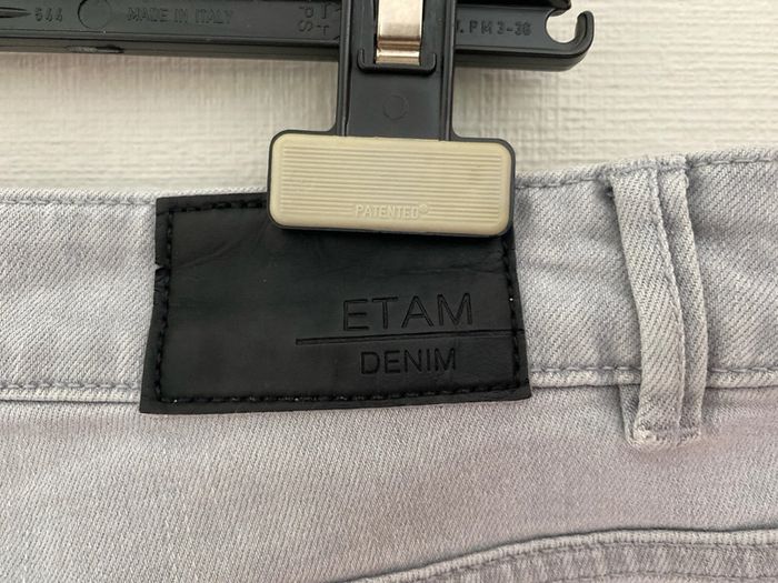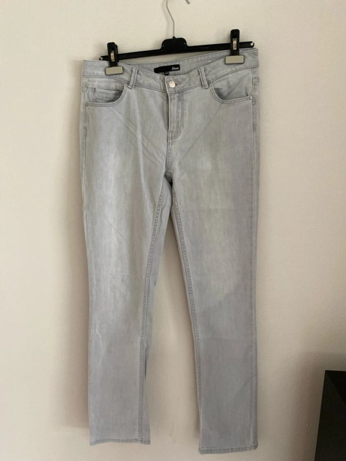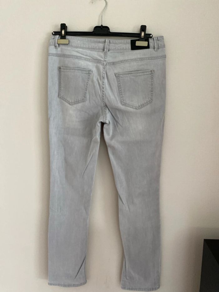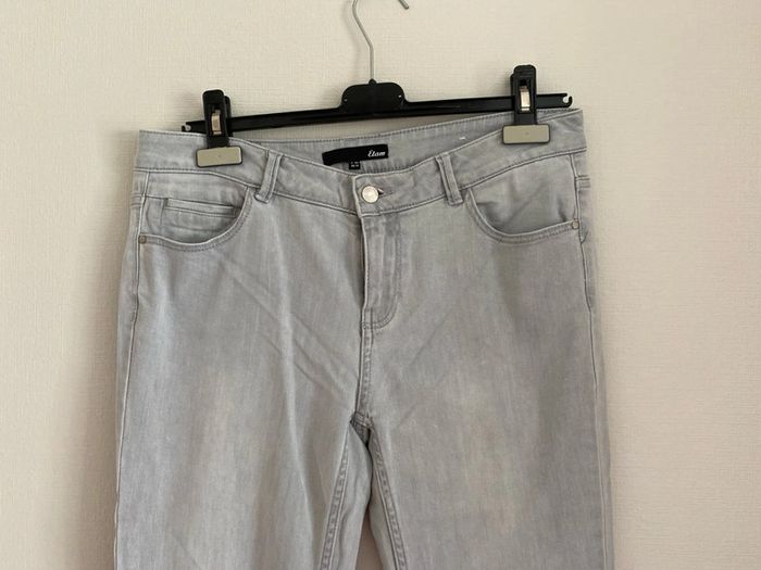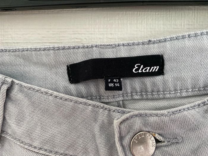 Jean gris clair de la marque Etam en tissu très agréable et tout doux à porter Taille 42 2 toutes petites taches sur la jambe gauche (cf dernière photo)
