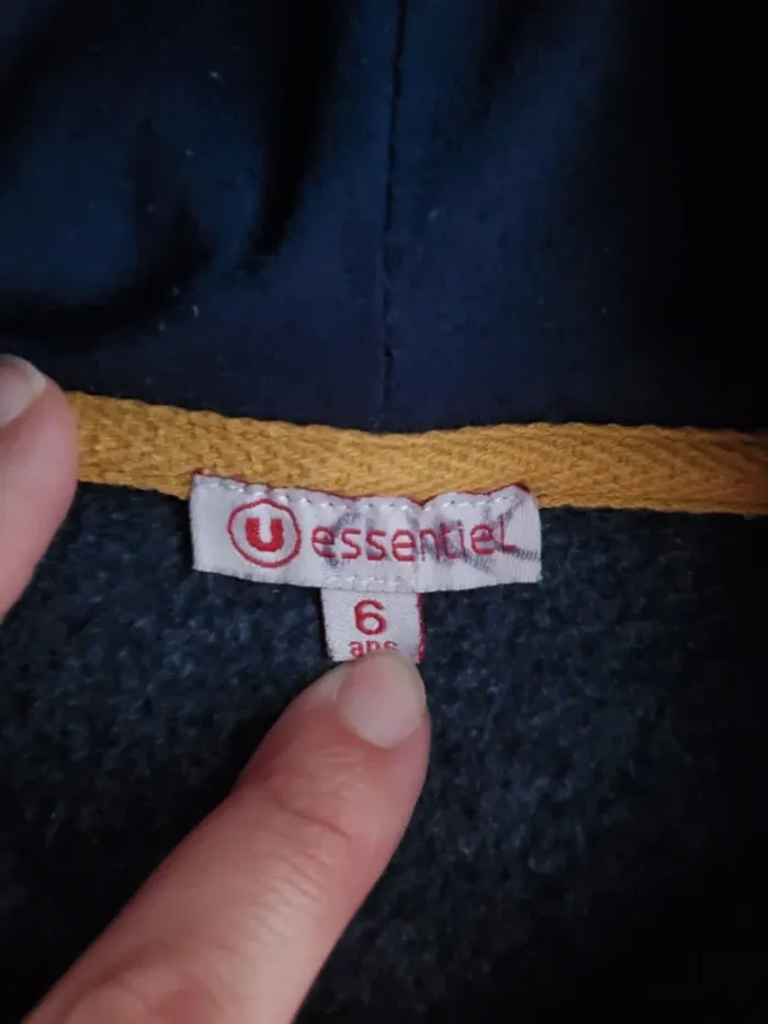 Veste à capuche U essentiels. Taille 6 ans mais taille petit, c'est bien pour une transition 5-6 ans. Bon état