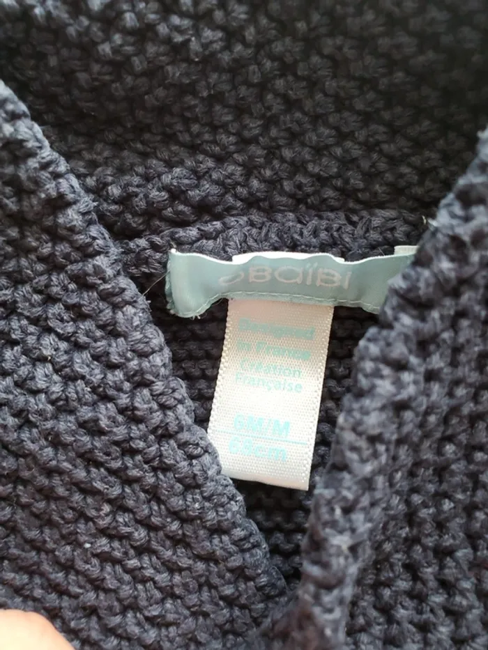 Gilet grosse maille en taille 6 mois. Très bon état. Marque Obaibi