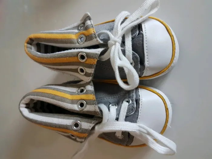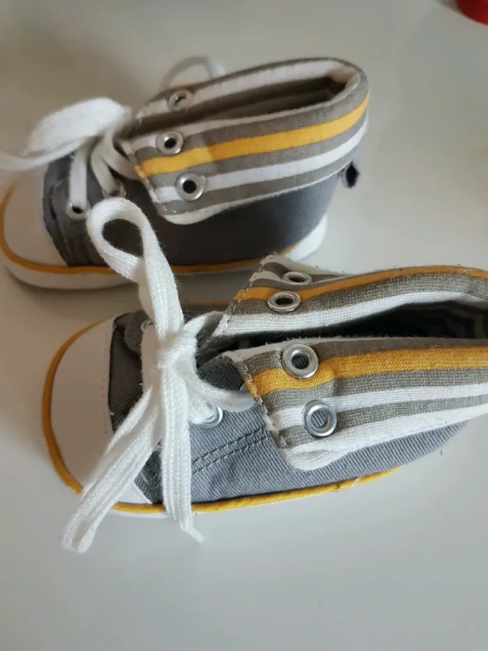 Baskets souples style Converse. Marque Gemo. La pointure n'est pas indiquée mais je dirai du 6/9 mois.