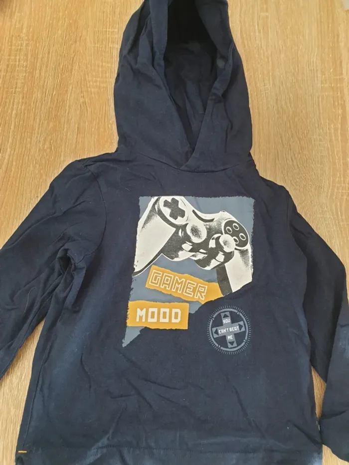 T shirt manches longues avec capuche. Comme neuf. De mémoire il n'a jamais été porté.