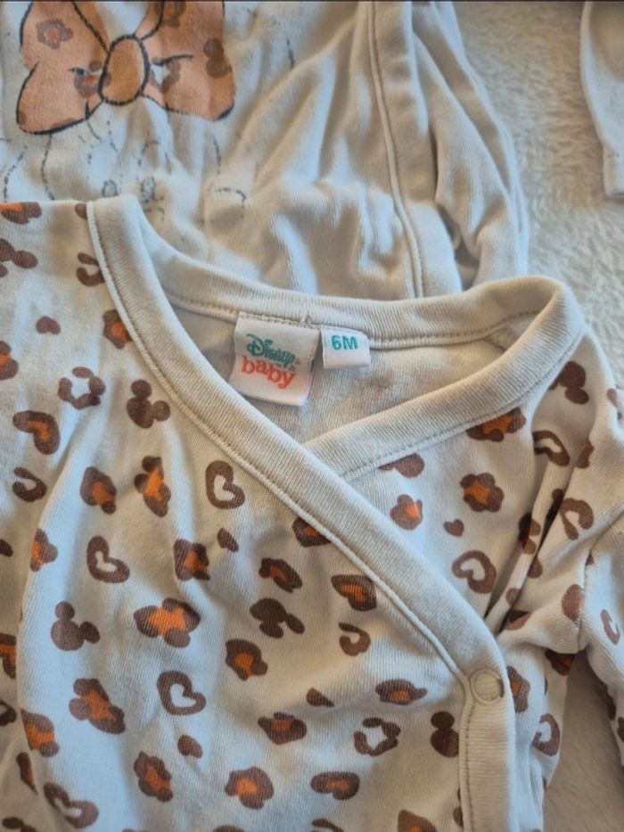 Lot 2 bodies minnie 6 mois disney Les cols sont légèrement jaunes Le motif minnie est effacé sur un des bodies