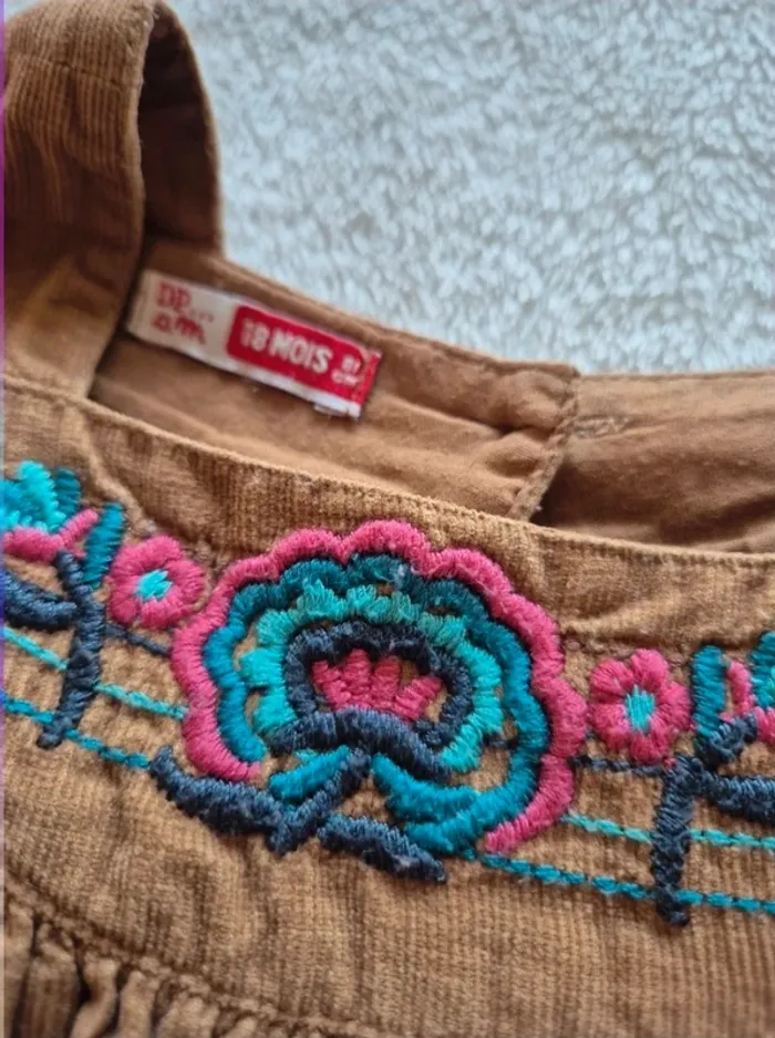 Robe effet velours côtelé marron avec broderies Du pareil au meme 18 mois Pour tous mes articles en 18 mois : #lylaraya18mois