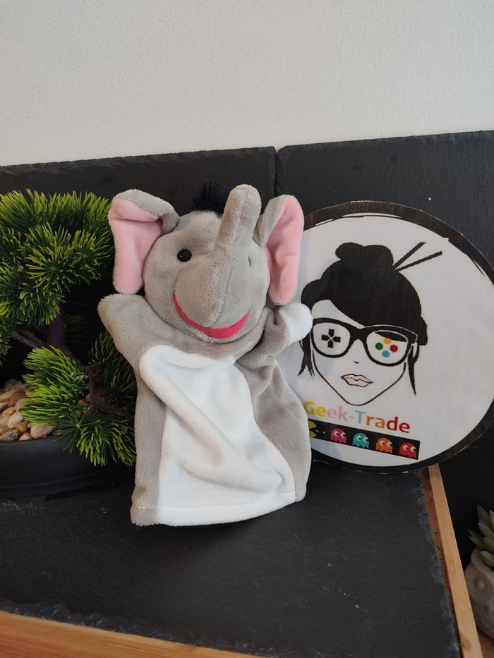 doudou marionnette main melissa & Doug éléphant gris noir rouge Queue Blanc Rose