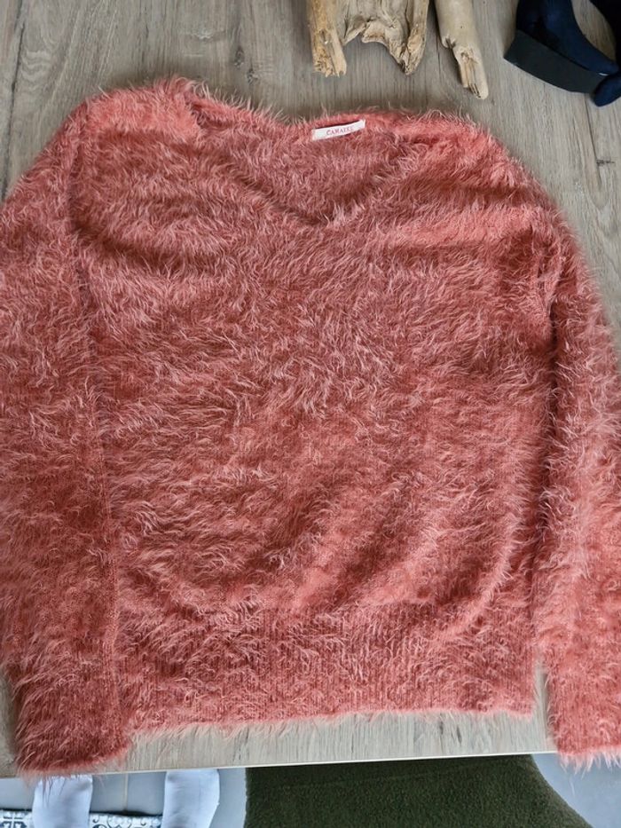 Pull rose corail tout doux en très bon état, taille M