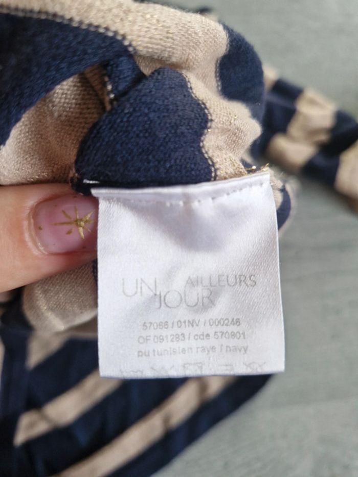 Pull rayé doré et bleu de la marque "un jour ailleurs" taille 3