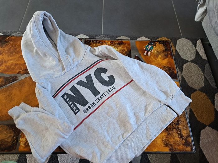 Sweat à capuche tape à l œil en très bon état, indiqué 10 ans mais taille plutôt comme un 8 ans