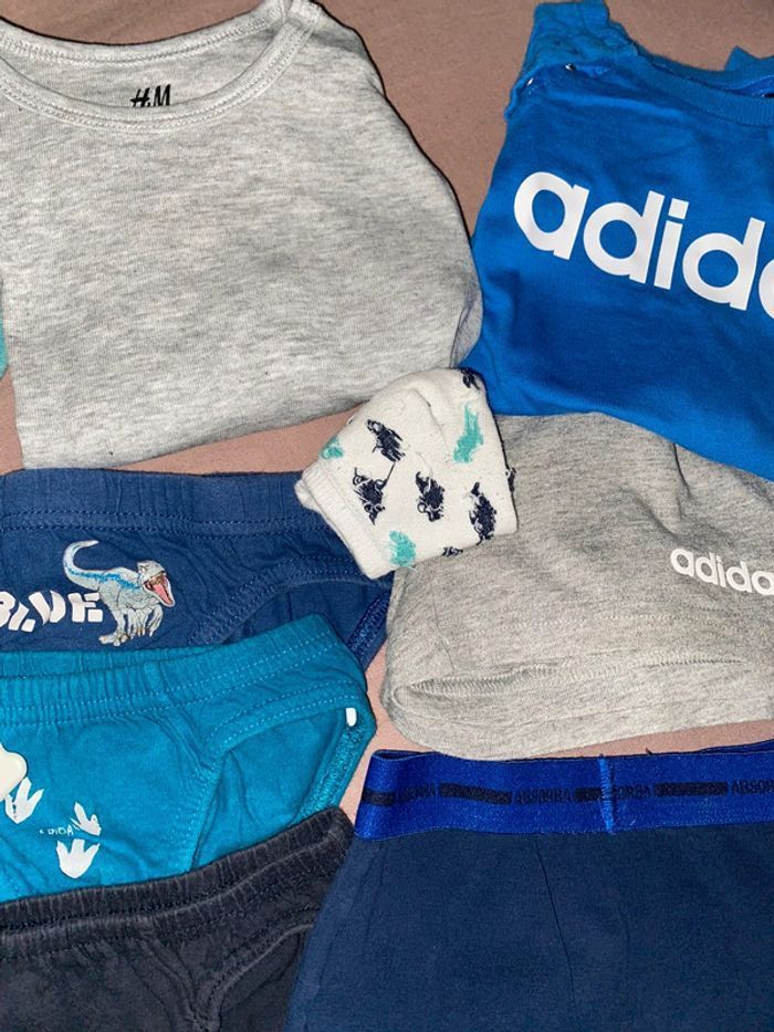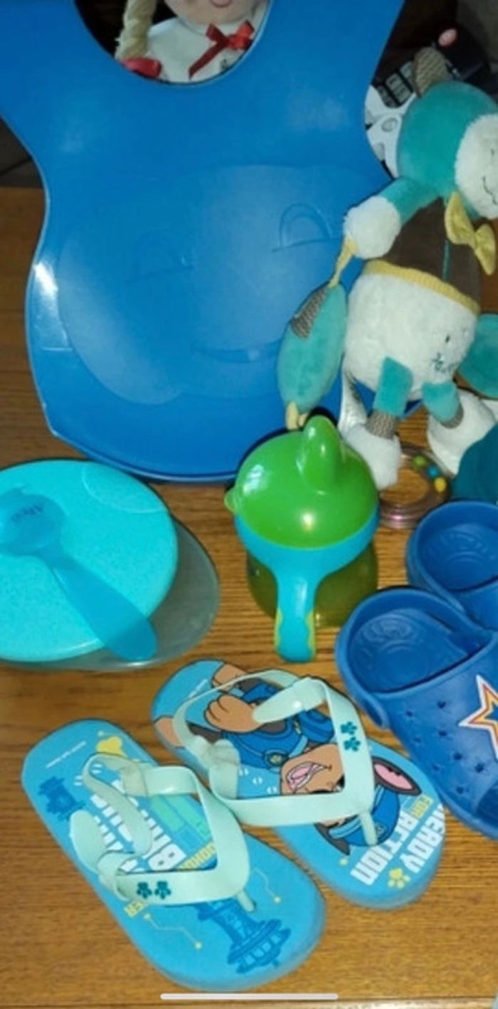 ensemble short Adidas 12/18mois ,1 body h&m 2/3ans,une peluche , 1 slip 2ans ,3 culottes 2/3ans & un de 4-5ans, une paire de socquette, un petit bol avec couvercle plus cuillère et un petit biberon avec des poignées , 1 bavoir en plastique, 1 paire de tongue pat patrouille (assez usée) et 1 paire de claquette taille 25 Utiliser plusieurs fois mais reste en très bon état sans défaut a part le petit bol voir la dernière photo 13 ARTICLES AU TOTAL #jjoannaaaenfant #Claquette #claquettes #sandale #sandales #claquette25 #claquettegarcon25 #urgent #chaussuregarçon #vetementgarçon #vetementsenfants #vêtementsgarcon #lotsbebe #lotbebegarçon
