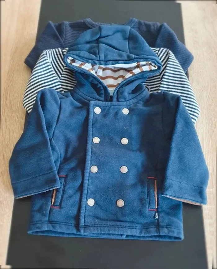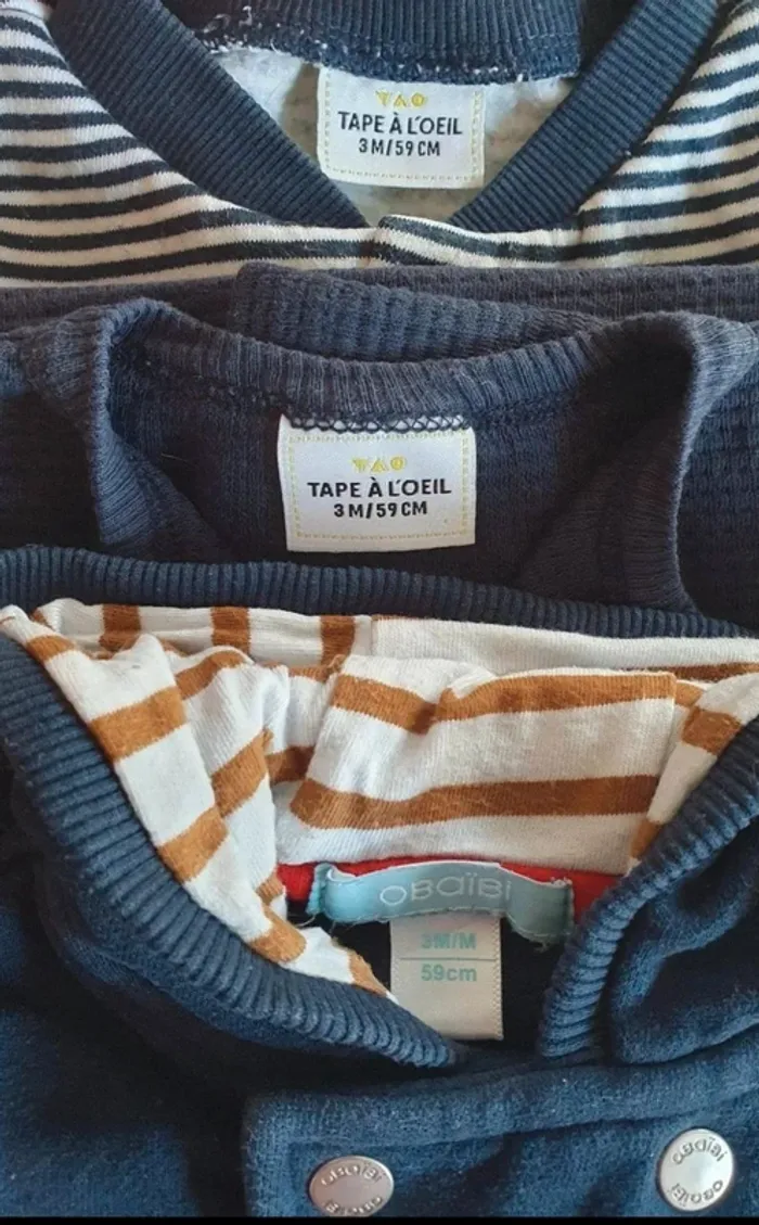 Bon état général, présence de bouloches. 3 mois 1 veste Obaïbi, 1 gilet et 1 veste tape à l'œil #titegwen_garçon_3mois