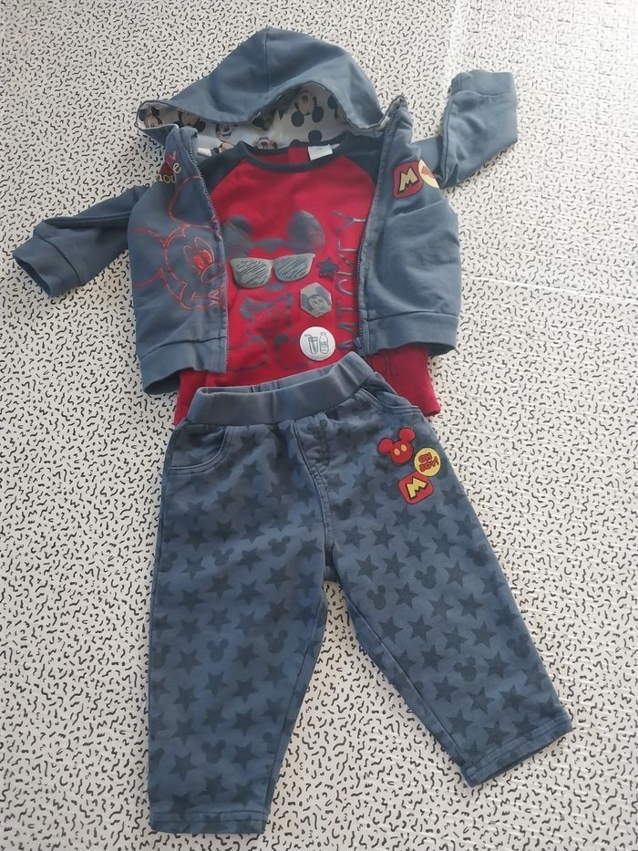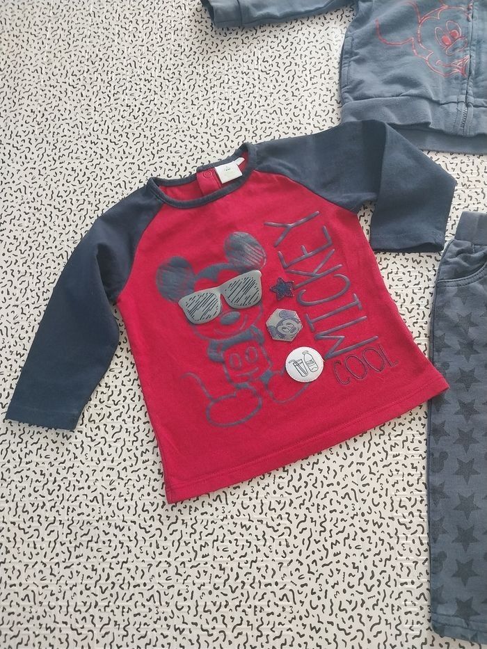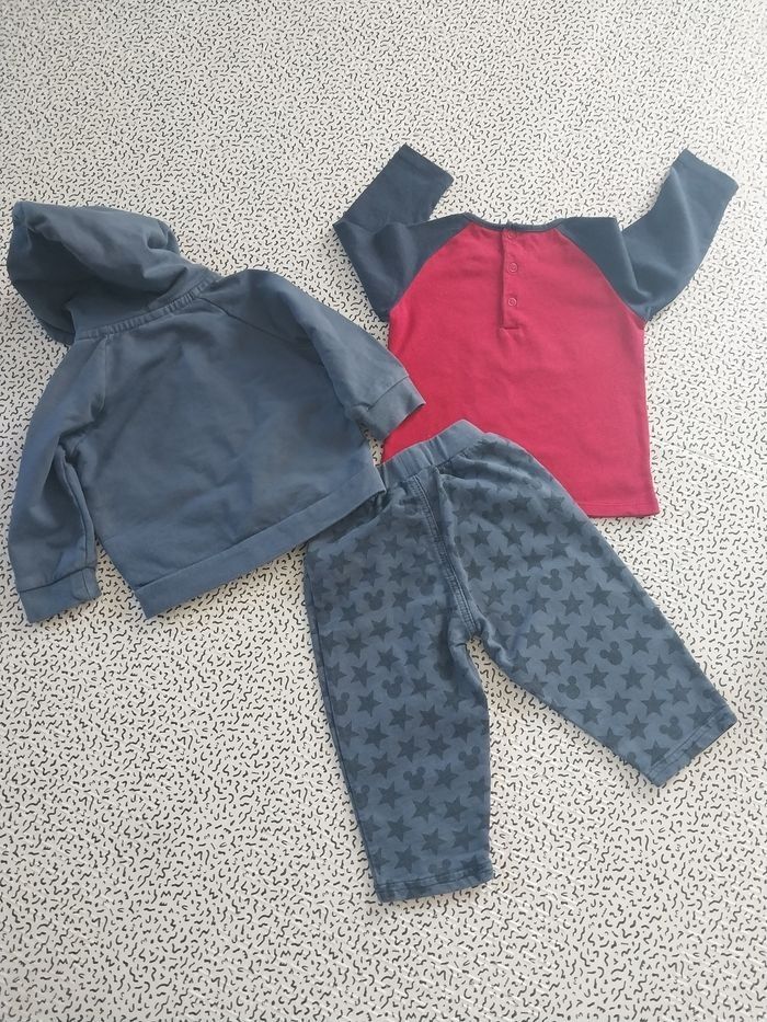 Lot 3 pièces Mickey : sweat capuche, t-shirt manches longues et pantalon assorti ⭐🐭 💙 Confortable & pratique pour bébé ! 📌 Taille 12 mois – Bon état #Disney #Mickey #BébéGarçon #12mois #DisneyBaby