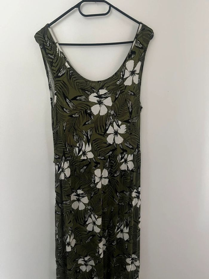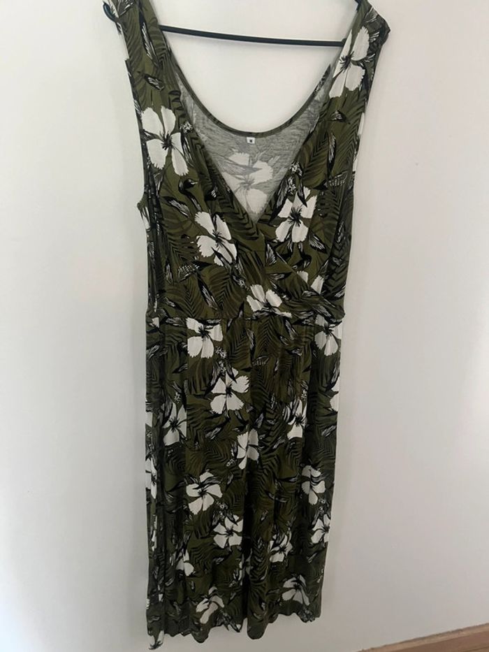 Robe mi longue kaki fleurie décolleté V taille M - photo numéro 2