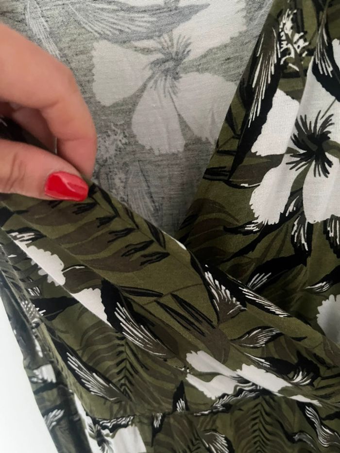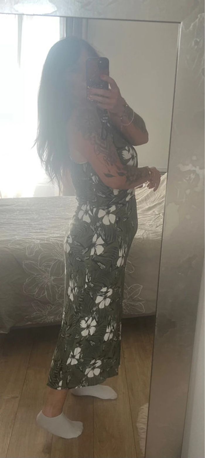 Robe mi longue kaki fleurie décolleté V taille M - photo numéro 9