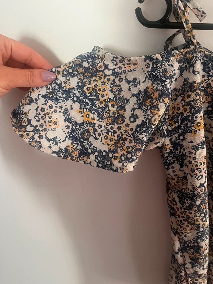 Blouse épaules dénudées réglable fleuri bleu et jaune taille unique - photo numéro 4