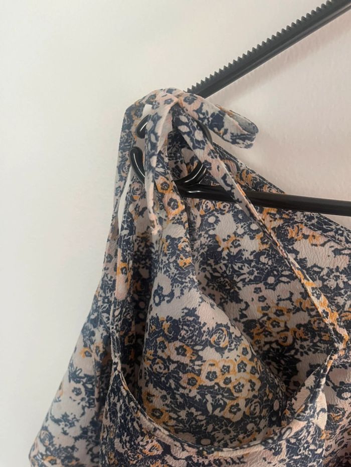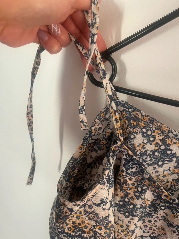 Blouse épaules dénudées réglable fleuri bleu et jaune taille unique - photo numéro 3