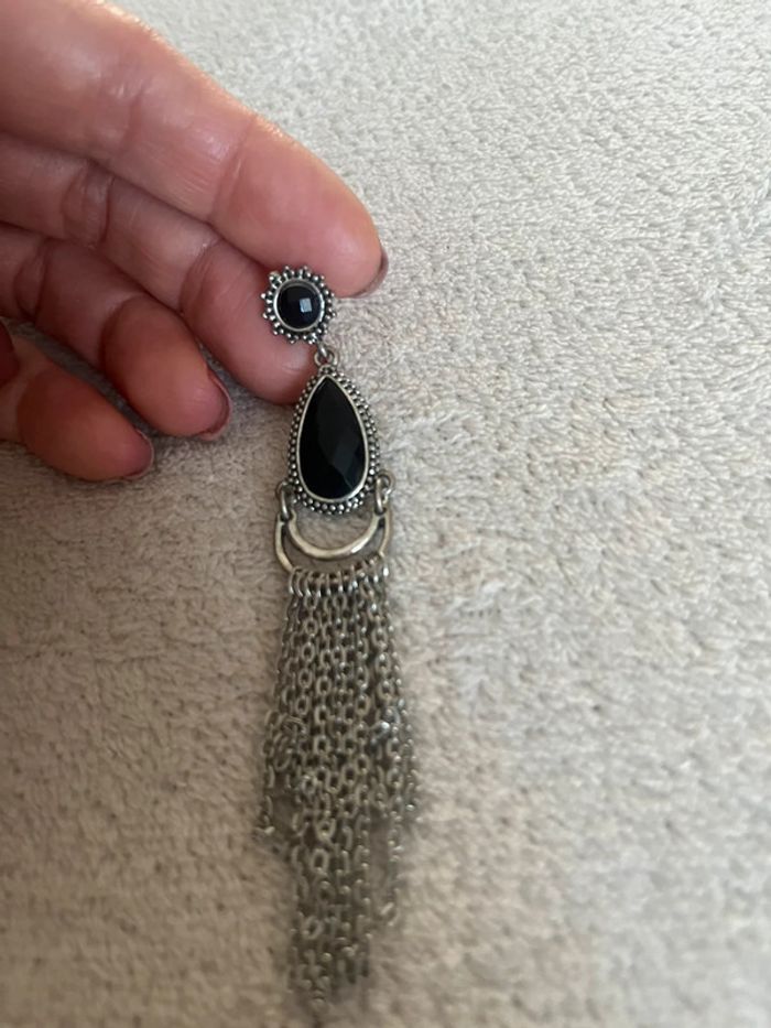 Boucle d’oreille pendante argentée et noire - photo numéro 2