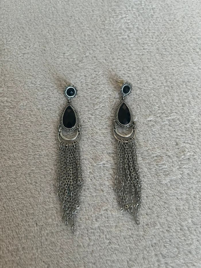 Vends cette paire de boucles d’oreille pendantes argentée et noire