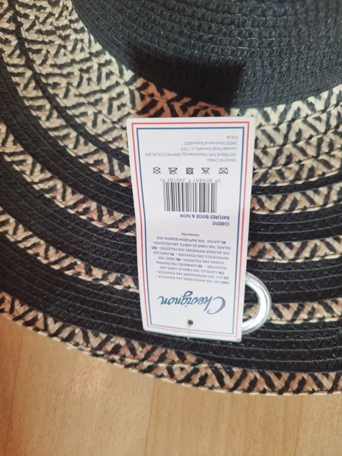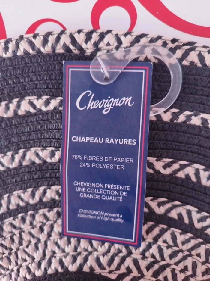 Chapeau Chevignon à rayures Beiges et noires NEUF AVEC SON ETIQUETTE TAILLE UNIQUE 76 % fibre de papier 24 % polyester PRIX REEL 30 €