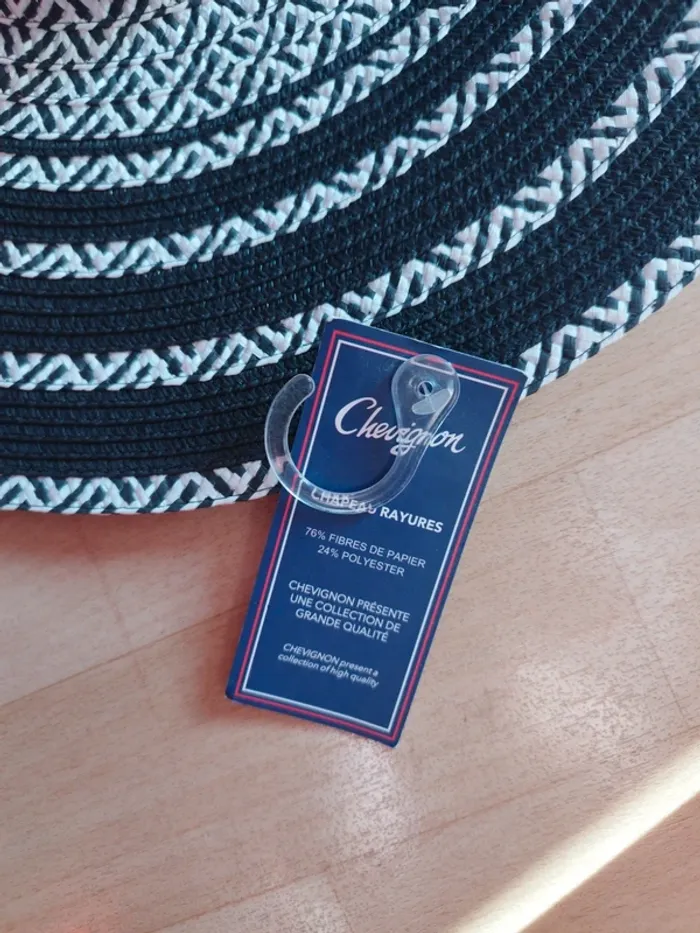 Chapeau Chevignon à rayures Blanches et noires NEUF AVEC SON ETIQUETTE TAILLE UNIQUE 76 % fibre de papier 24 % polyester PRIX REEL 30 €