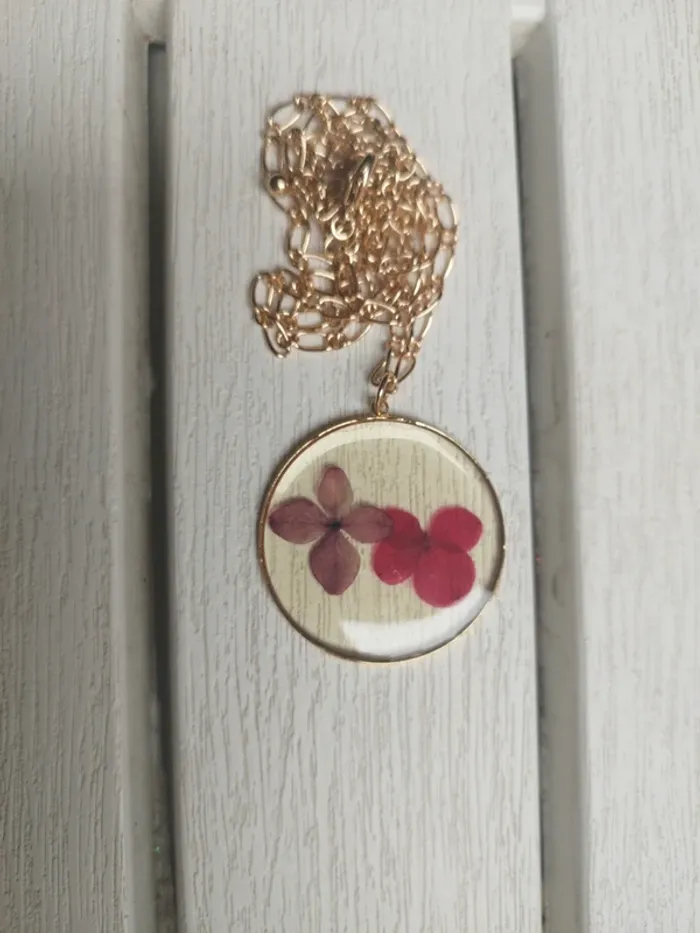 Collier très long avec fleurs séchées sous monocle - photo numéro 3